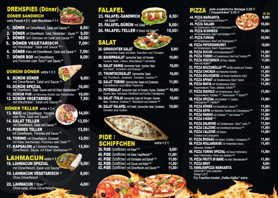 Speisen - Torino Rodgau Pizza & Kebap
