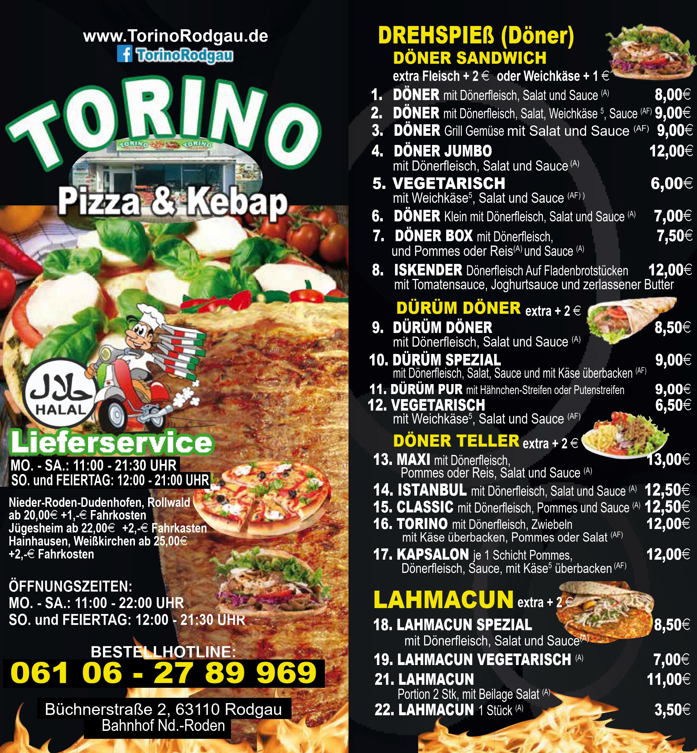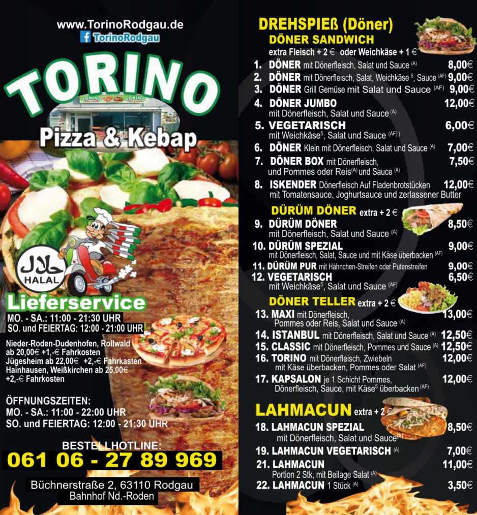Speisen - Torino Rodgau Pizza & Kebap